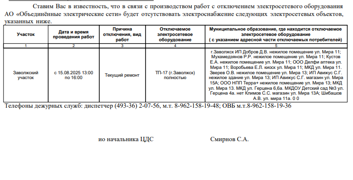 Внимание! Отключение электроэнергии!