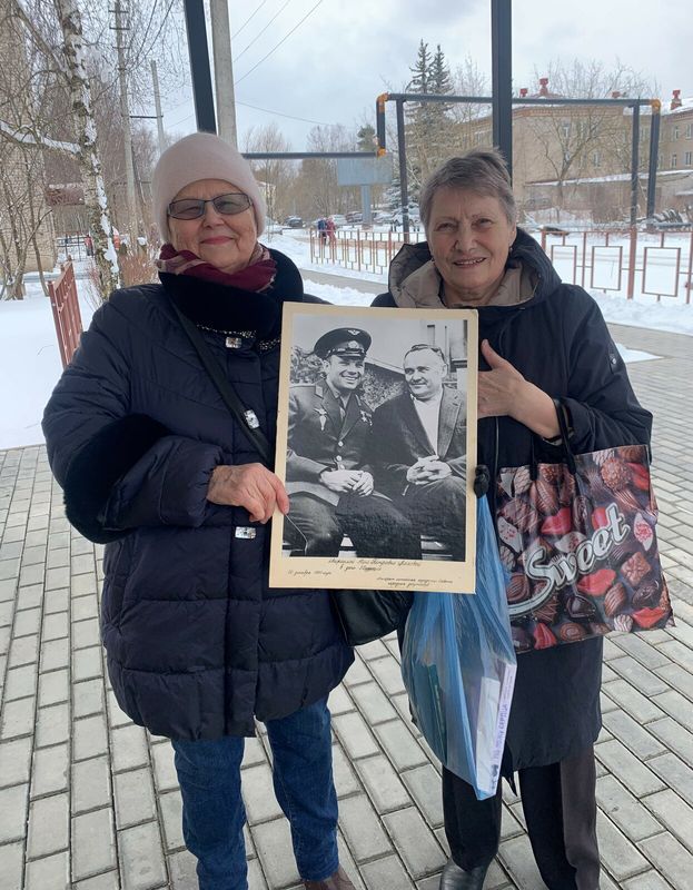 Надо сказать, для нас акция не совсем обычная, особенная. Портрет Ю.А. Гагарина и С.П. Королева – это подлинная драгоценная реликвия, которую подарила Заволжской библиотеке жительница города Н.П. Махова. Нина Петровна – известный в Заволжске врач, сейчас на заслуженном отдыхе. Она отметила 90-летний юбилей, является представителем поколения детей войны.