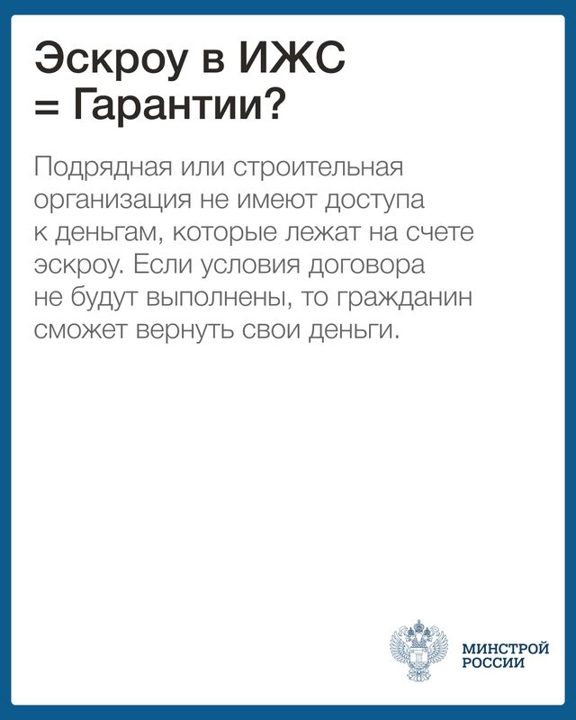 Механизм создает гарантированную защиту вложенных средств граждан на период строительства жилых домов, нивелирует риски потери заказчиками своих денежных средств в случае неисполнения подрядными организациями своих обязательств, а также риски незавершения строительства индивидуальных жилых домов и позволит сократить число граждан, пострадавших от недобросовестных подрядных организаций.