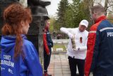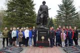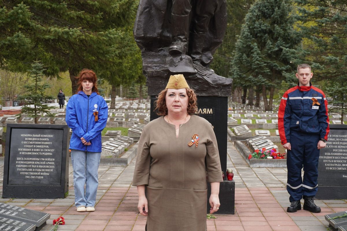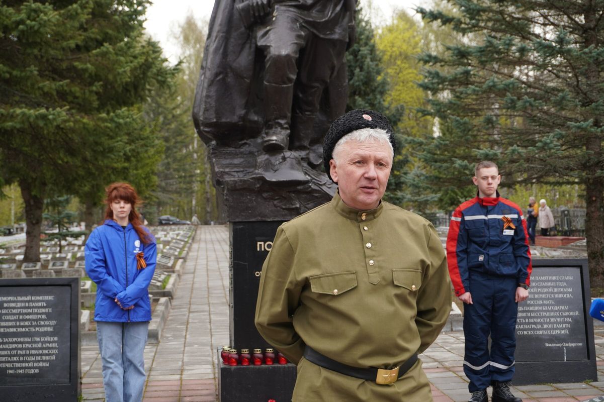 На автотранспорте, украшенном символикой к 80-летию Великой Победы, частицу огня доставили к памятнику Воину-освободителю на кладбище в местечке Балино Иванова, где покоятся останки более 1700 солдат, умерших от ран в госпиталях Ивановской области во время Великой Отечественной войны.
