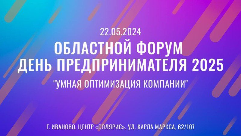 22 мая 2025 года в Иванове на площадке центра «Солярис» состоится самое ожидаемое деловое событие года — областной форум «День предпринимателя». Это уникальная возможность для вас узнать о самых актуальных трендах ведения бизнеса, обменяться деловыми контактами и вдохновиться новыми идеями.