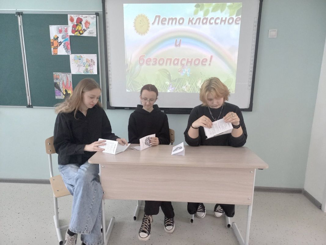 Кроме того, в 4,6, 8 классах провели беседу по безопасности поведения в летние каникулы заместитель начальника 21 ПСЧ 2 ПСО ФПС ГПС ГУ МЧС России по Ивановской области Гусев Р.Е. и сотрудник ОБУСО Заволжский ЦСО, Лютова В.К. – специалист отделения профилактической работы с семьёй и детьми.