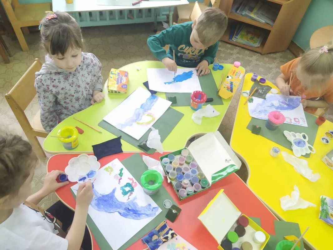 Дети обсуждали важность защиты Волги и с большим удовольствием рисовали ее на своих картинах.
