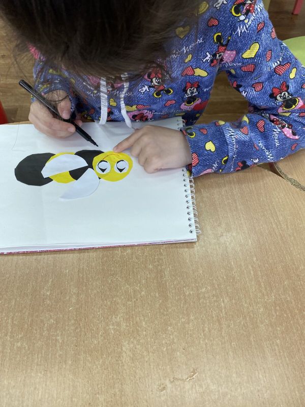 Ребята проявили свою фантазию и творческие способности, создавая аппликации с яркими изображениями пчёл. Затем они с удовольствием играли в подвижную игру «Пчёлки и цветы».