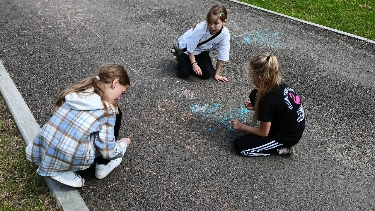 В конце первого дня в лагере прошёл фестиваль рисунков на асфальте. Дети с удовольствием рисовали яркие картины, посвящённые лету, дружбе и детству, превращая серый асфальт в красочный калейдоскоп.