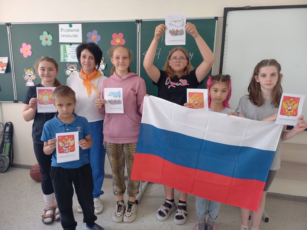 В этот знаменательный день воспитатели лагеря познакомили детей образовательной школы номер 3 с историей праздника. Ребята узнали много нового и интересного о государственных символах России, с удовольствием участвовали в интеллектуальной викторине «Я живу в России». Накануне праздника присоединились к акции "Окна России".