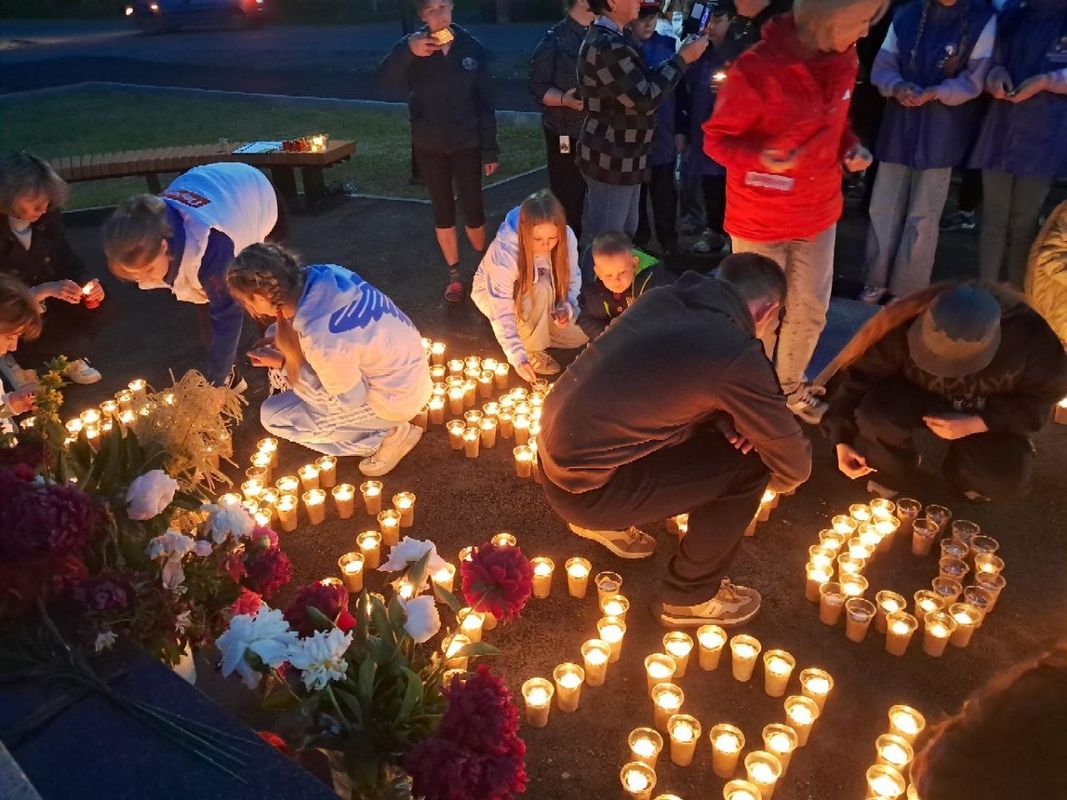 В преддверии Дня памяти и скорби, 21 июня в 22:00 возле обелиска павшим воинам в микрорайоне Фибра жители Заволжска, Волонтёры Победы и активисты Движения Первых собрались, чтобы почтить память павших героев.