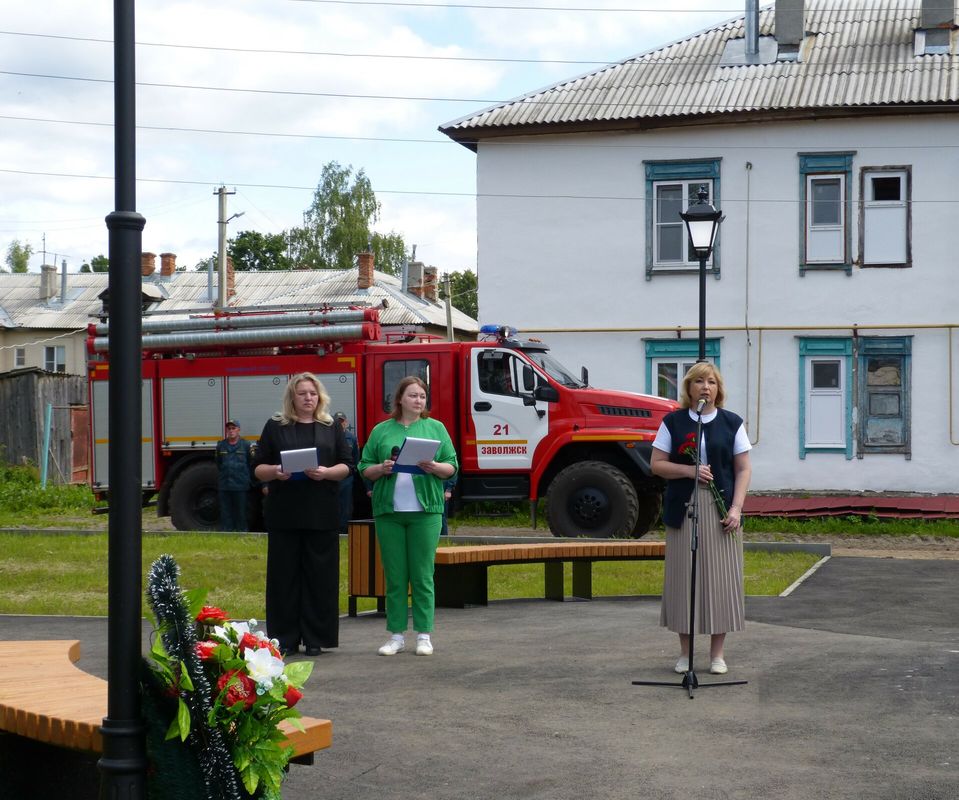 Горожане и гости Заволжска собрались в этот день у обелиска павшим воинам в микрорайоне Фибра, чтобы почтить память воинов–земляков, павших за Родину на полях сражений. К собравшимся обратились Ольга Александровна Сенова, заместитель главы администрации Заволжского муниципального района, Вера Константиновна Ратас, депутат Совета Заволжского городского поселения, Мария Леонидовна Зайцева, секретарь Заволжского райкома КПРФ.