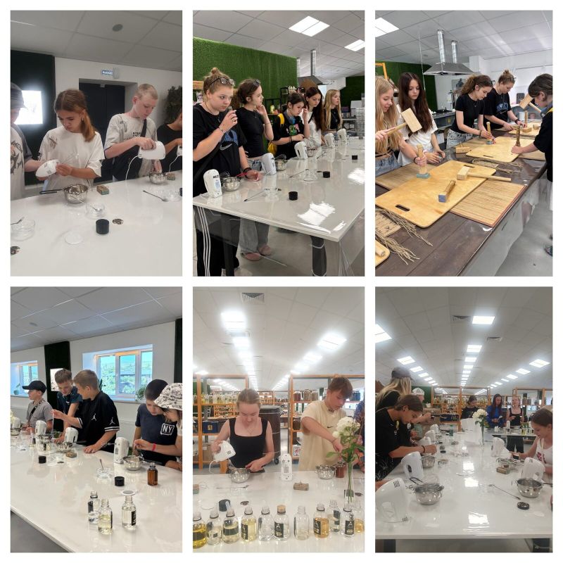 После активной прогулки на свежем воздухе всех ждал увлекательный мастер-класс в уютном парк-отеле. Под руководством опытных мастеров лицеисты создавали настоящие произведения искусства — нежный крем на основе масла Ши и ароматное мыло с натуральными травами . Процесс оказался настолько захватывающим, что даже самые непоседливые ребята сосредоточенно смешивали ингредиенты, подбирали ароматы и с гордостью демонстрировали свои экологичные шедевры.