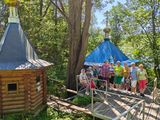 Далее команды отправились по маршруту до деревни Еремено, предварительно сделав разминку, из-за жаркой погоды маршрут пришлось сократить, и часть пути участники преодолели на автомобилях. В деревне Еремино команды посетили несколько православных объектов: часовню Николая Чудотворца, дом-музей Николая Ереминского и святой источник «Николенькин ключик», где все желающие смогли искупаться в купели и набрать ключевой воды.