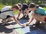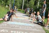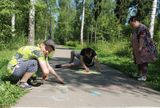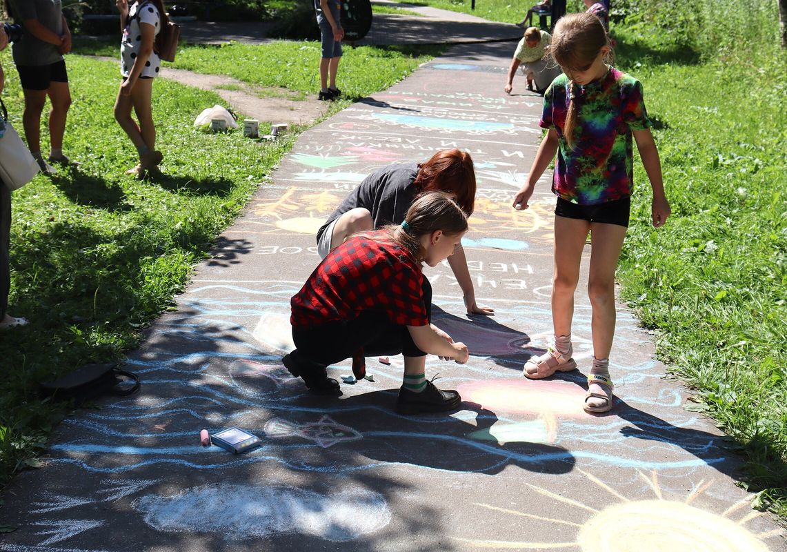 Перед участниками стояла непростая задача-проиллюстрировать стихотворение «Родное», автором которого является детский поэт Владимир Орлов. Уже через несколько минут серый асфальт превратился в яркий мир, наполненный красками лета.