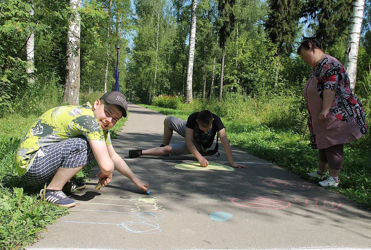 16 июля получатели услуг отделения социальной реабилитации, дети, находящиеся на социальном обслуживании в отделении социального сопровождения семей с детьми Заволжского центра социального обслуживания и волонтеры отряда «Импульс» собрались вместе в городском парке для участия во Всероссийской акции «Мы рисуем на асфальте».