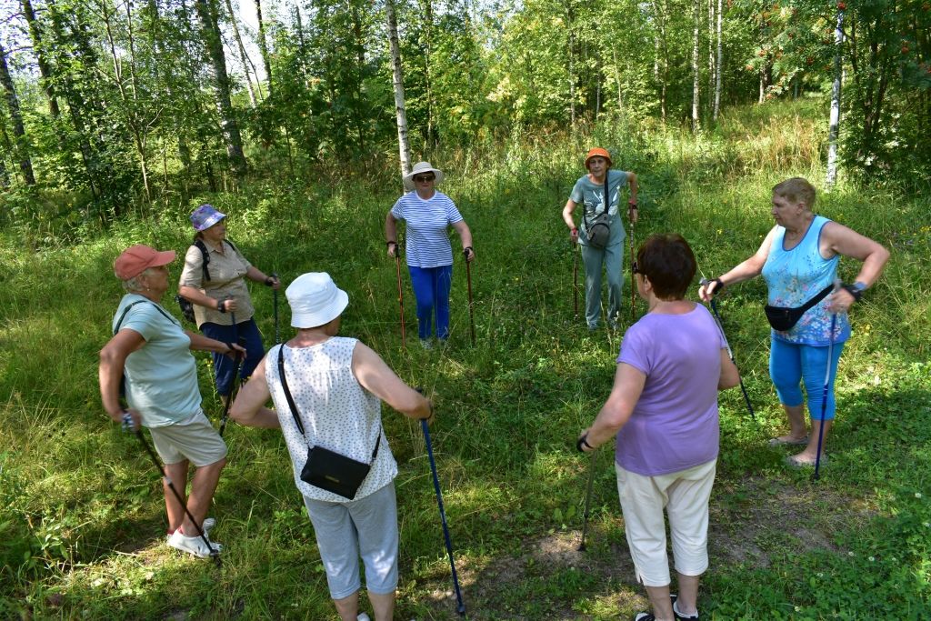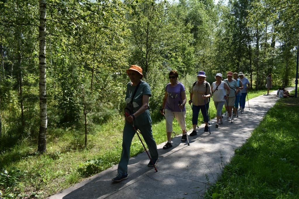 Два раза в неделю любители «северной» ходьбы старшего поколения собираются у входа в городской парк и совершают прогулки на свежем воздухе, периодически меняя маршрут. В ходе тренировки проводятся разминочные и заминочные упражнения для разогрева и растяжки мышц, выполняется комплекс упражнений «Цыгун».