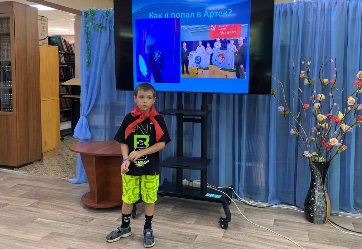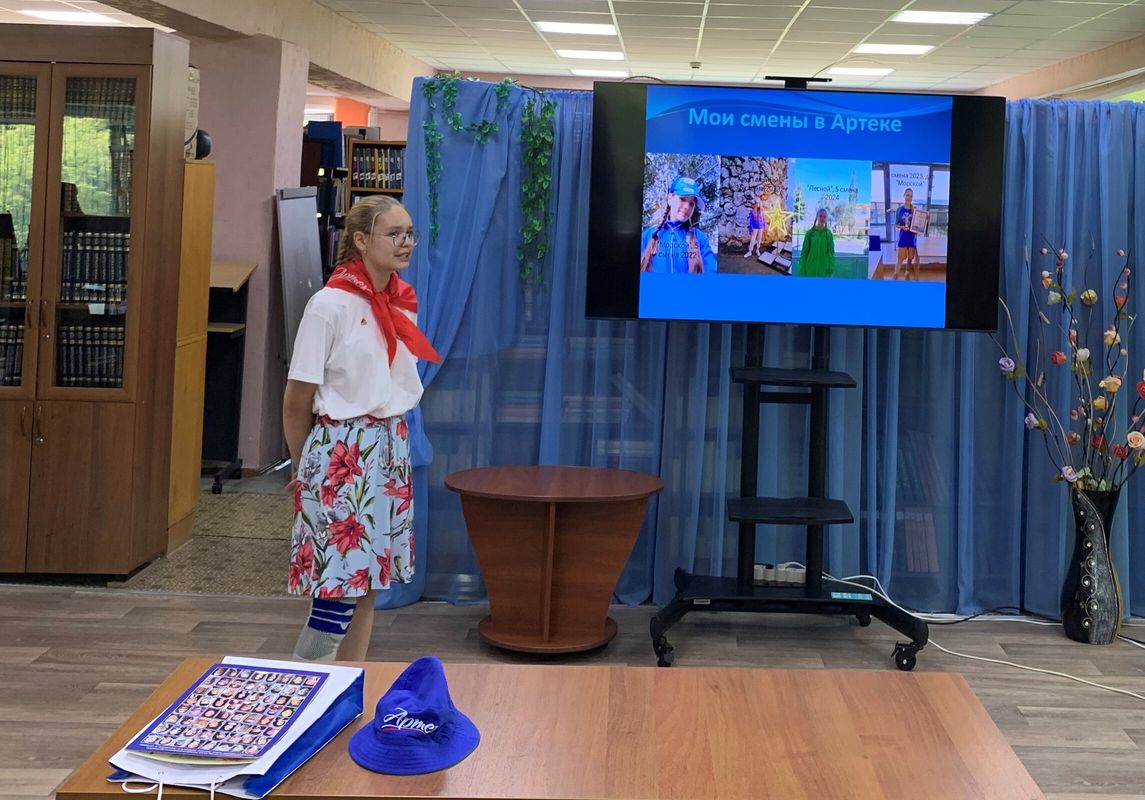Сотрудники библиотеки Н.В. Петриченко, Т.В. Зайцева и Т.Н. Наумова предложили молодежи разные творческие задания и конкурсы об истории Артека, его сегодняшнем дне, звездных гостях, традициях. Ребята сочиняли слоганы, придумывали и рисовали собственные эмблемы отрядов, разучивали артековские игры. Своими впечатлениями о поездке в Артек поделились Маргарита и Миша Межаковы. Они подготовили презентацию, где можно было увидеть, как замечательно живет Артек, какие организуются экскурсии, какие творческие способности можно раскрыть в профильных отрядах, показали атрибутику лагеря.