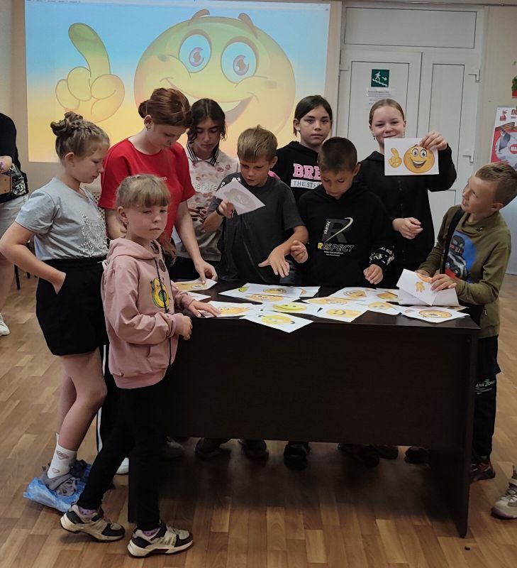 Первым этапом встречи стала игра «Угадай смайлик», направленная на улучшение настроения и развитие эмоционального интеллекта у детей. Каждый участник должен был угадать правильный эмодзи, а остальные — без слов подсказать при помощи выражений лица. Игра вызвала живой интерес у ребят и помогла им почувствовать себя увереннее в общении.