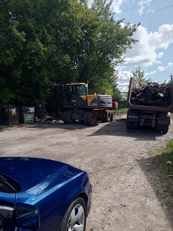 Сотрудники МБУ «Волга» проводят работы по вывозу мусора с территории, прилегающей к контейнерам для сбора твердых коммунальных отходов.