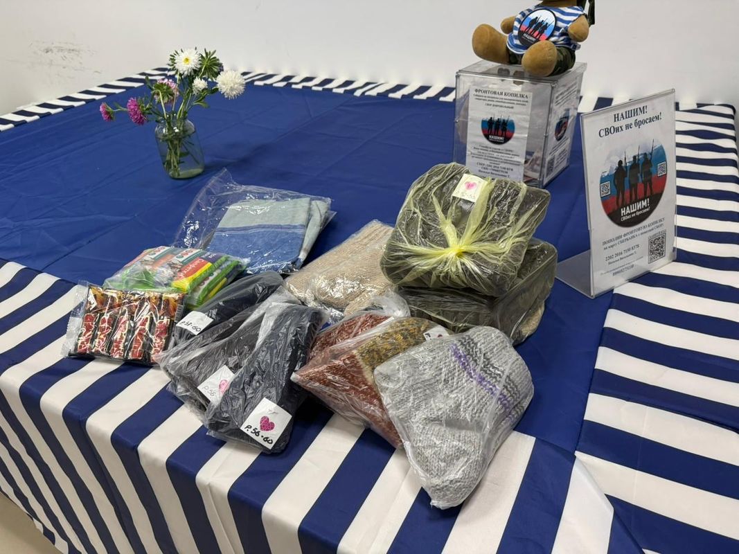 Отдельные слова благодарности сотрудники маскировочного центра выразили Галине Петровне Догадкиной, которая ежемесячно привозит в центр вязаные изделия, предметы личной гигиены и другую гуманитарную помощь для участников СВО.