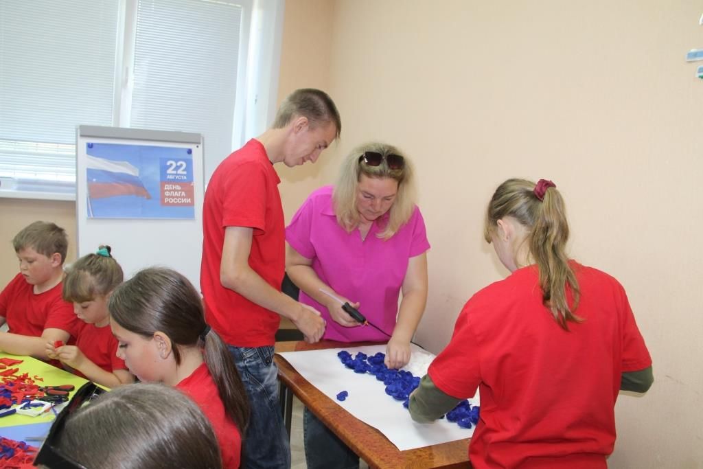 22 августа в Заволжском центре социального обслуживания прошел творческий мастер – класс «Флаг России», посвященный Дню Государственного флага, который провела Постнова Любовь Александровна, руководитель клуба «Мастерица» при МКУК «Заволжский городской Дом культуры».