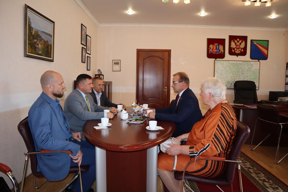 Временно исполняющий полномочия Главы района Николай Костров и первый заместитель Главы Валерий Бусурин провели встречу с депутатом Государственной думы РФ Михаилом Кизеевым, директором Заволжского центра социального обслуживания Ольгой Советовой и директором Заволжской детско-юношеской спортивной школы Сергеем Челноковым.