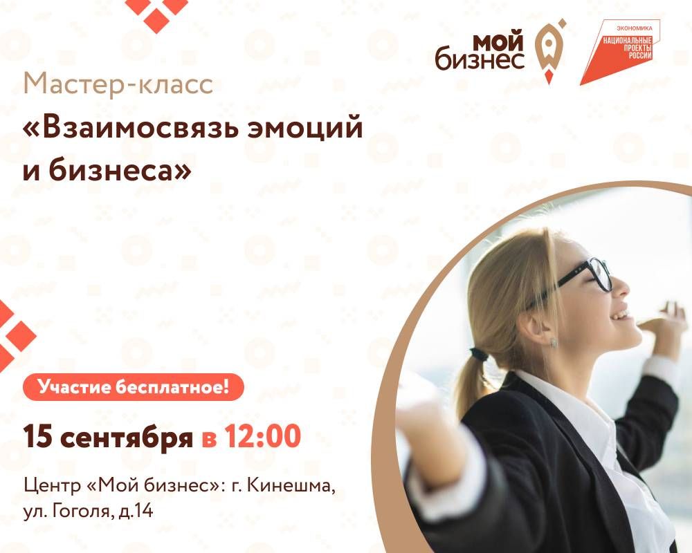 Центр "Мой бизнес" приглашает предпринимателей Ивановской области на мастер-класс "Взаимосвязь эмоций и бизнеса: Как управлять своими чувствами для достижения успеха".