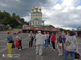 Вторая группа, сформированная также из участников других клубных объединений, начала свой маршрут с посещения «Горы Левитана», где участники посетили «Церковь Воскресения Христова» и сделали фото на память, затем спустились на набережную и, прогуливаясь по ней, делали снимки на память. Встреча с гидом Андреем Владимировичем была назначена у памятника Ф.И. Шаляпину. Экскурсовод рассказал о знаковом месте, о том, как имя Шаляпина связано с Плесом и повел группу на торговую площадь, где провел викторину «Расшифруйте прежние названия купеческих лавок». Затем, преодолев подъем на «Соборную гору», участники побывали на нескольких смотровых площадках, где из рассказа гида узнали об истории появления города и его родоначальниках. Андрей Владимирович рассказал в картинках о современном Плесе и значимых мероприятиях, которые проходили в городе в последнее время. Самое большое впечатление на жителей и гостей Плеса произвел прошедший в 2023 году «Концерт над Волгой. Посвящение русской провинции». На сцену под открытым небом вышло целое созвездие знаменитых артистов. Пятый «Дачный фестиваль имени Шаляпина» превратился в грандиозный концерт - в Плес приехали Станислав Любшин, Вадим Репин, Пелагея, Сергей Шакуров, Юрий Башмет с оркестром и другие знаменитости. Сцена Шаляпинского фестиваля стояла на Соборной - главной горе Плеса. Рассказ гида сопровождался звучанием музыкальных отрывков из классических произведений в исполнении оркестра Юрия Башмета, и это завораживало, как будто сам присутствуешь на концерте.