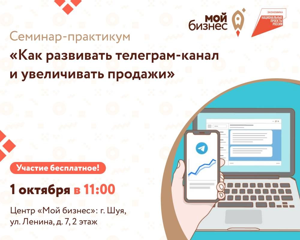 Центр «Мой бизнес» приглашает предпринимателей на бесплатный семинар-практикум: «Как развивать телеграм-канал и увеличивать продажи».