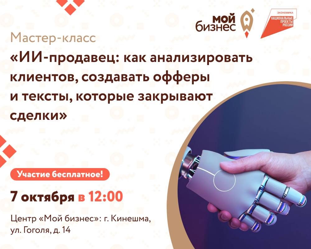🔉 Центр «Мой бизнес» приглашает предпринимателей на бесплатный практический мастер-класс: «ИИ-продавец: как анализировать клиентов, создавать офферы и тексты, которые закрывают сделки»