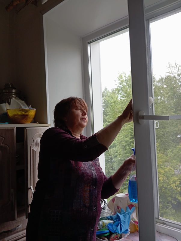 Бригада социальных работников города в составе 2 человек провела уборку и мытье балкона получателю социальных услуг, ветерану труда, почетному донору.