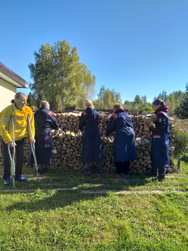 В селе Долматовский бригада социальных работников в количестве 4 человек перенесла и уложила 7 кубометров дров получателю социальных услуг.