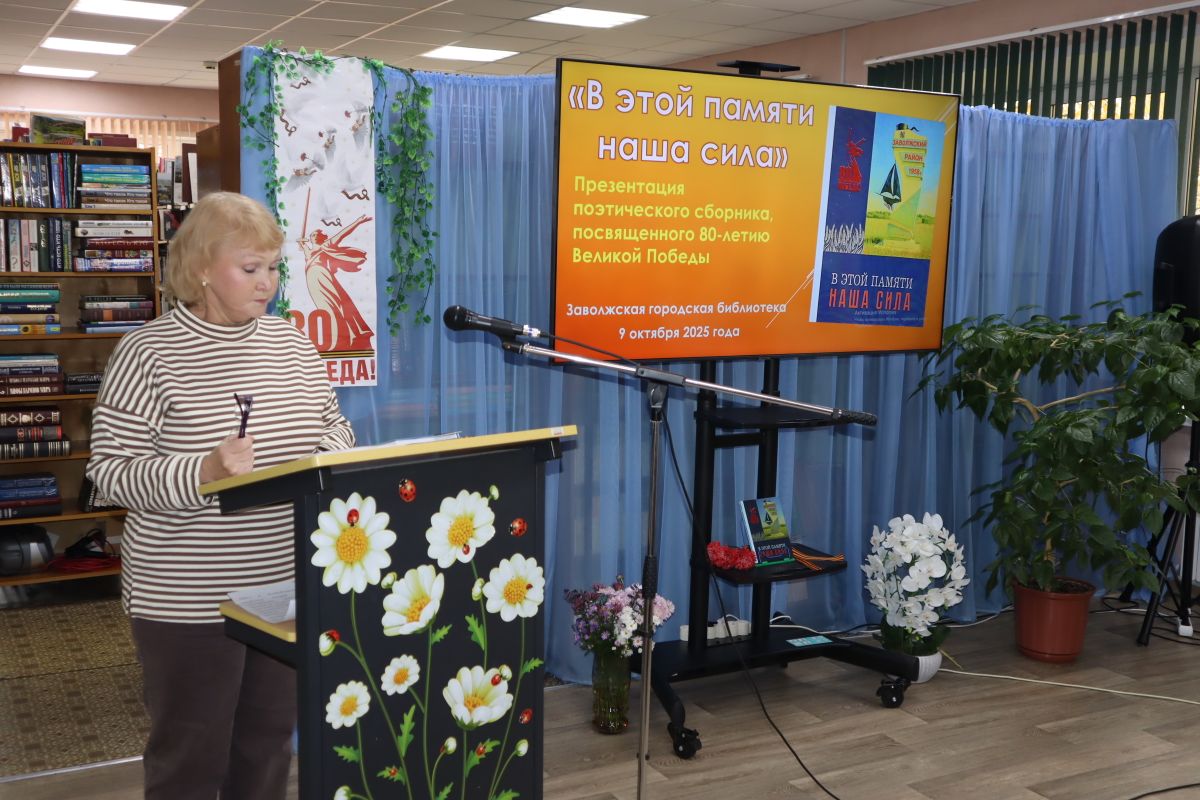 9 октября в читальном зале Заволжской библиотеки состояло знаменательное событие — презентация поэтического сборника «В этой памяти наша сила», посвященного 80-летию Великой Победы. Это не просто книга, а настоящий памятник нашим героям, их подвигам и нашей памяти о них.