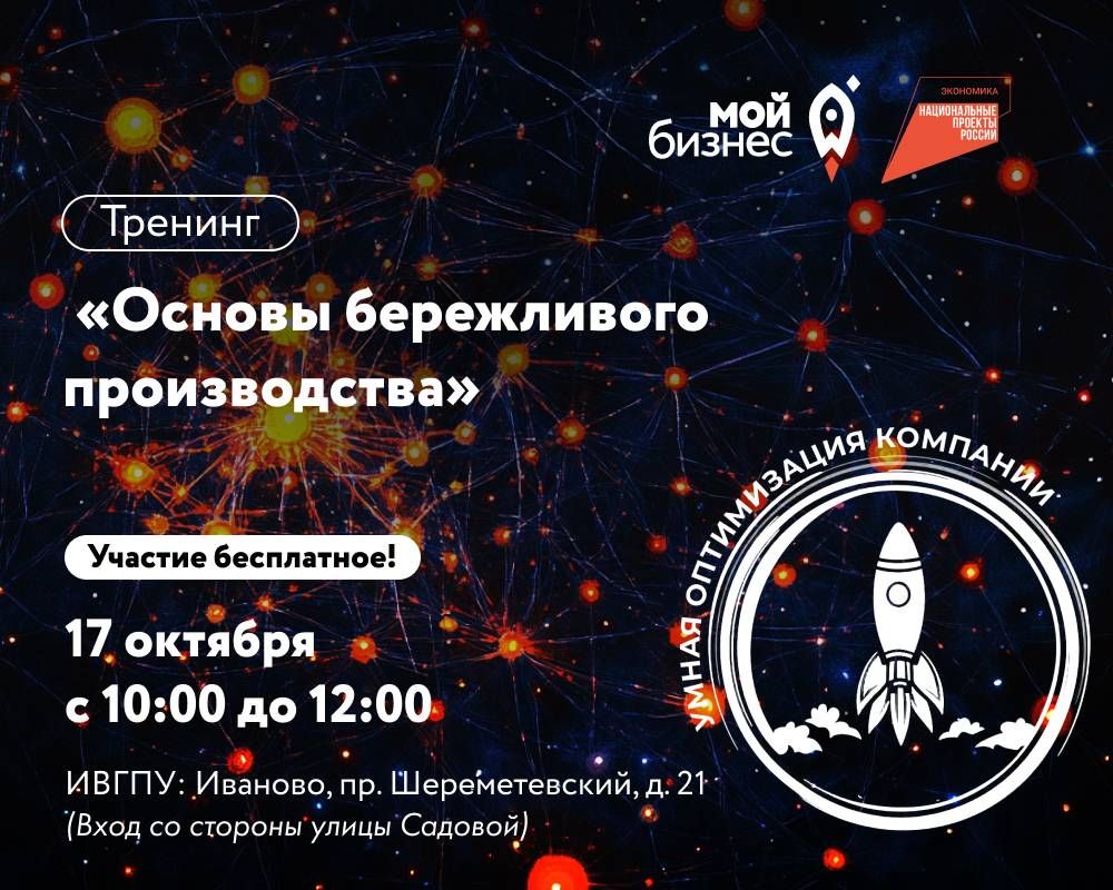 🚀 Центр «Мой бизнес» приглашает на бизнес-тренинг: «Основы бережливого производства».