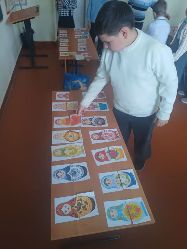 Учащиеся составляли пословицы и с азартом отгадывали старинные загадки, дружно командами выполняли игровые задания «Смотай нить в клубок», «Найди свою половинку», участвовали в весёлых конкурсах «Мастера-стеклодувы», «Ткачи».