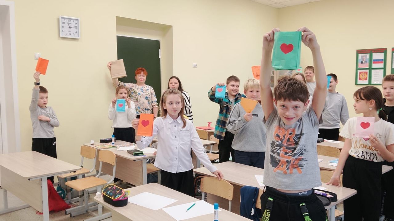 Четвероклассники поняли, что такие пакеты склеиваются из натуральных материалов, а значит, не загрязняют окружающую среду. Сделать небольшие подарочные пакеты можно из подручных материалов и оформить так, как подскажет фантазия. На мастер-классе ребята воспользовались цветной бумагой, украсив свои поделки яркими сердечками.