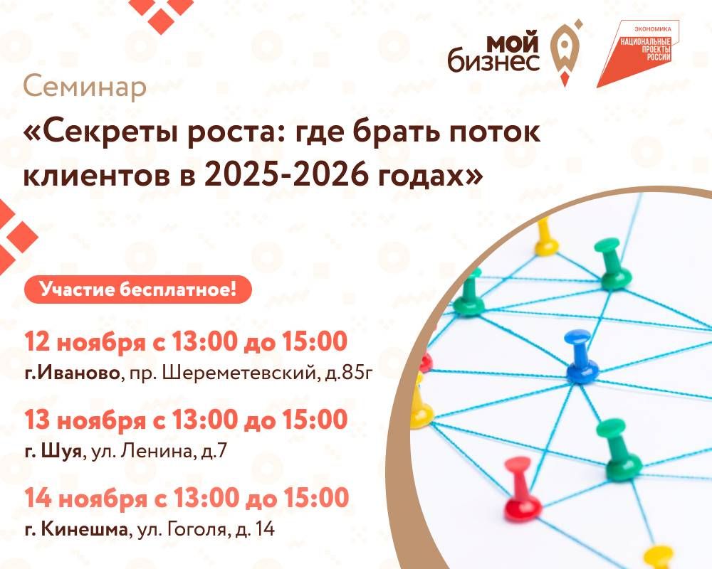 Центр «Мой бизнес» приглашает предпринимателей на семинар «Секреты роста: где брать поток клиентов в 2025–2026 годах»