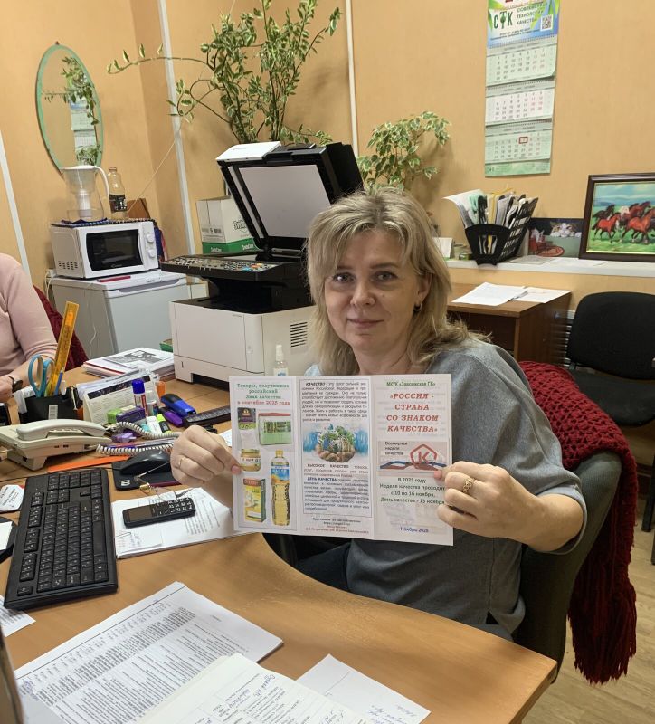 В рамках этой акции Заволжская библиотека провела на улицах и в учреждениях города флеш-акцию «Россия – страна со знаком качества». Горожанам и специалистам разного профиля были вручены красочные буклеты с интересной и полезной информацией об истории качества, о том, в каких сферах качество стоит на первом месте, где найти знак качества на упаковке и почему этим продуктам стоит доверять. Прозвучала главная мысль о том, что качество – это залог сильной экономики Российской Федерации и процветания её граждан. В буклете также представлены некоторые товары, получившие российский знак качества в осенние месяцы.
