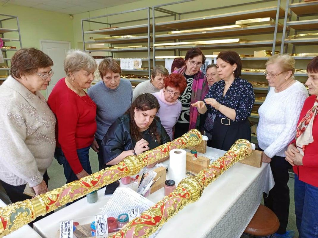 Знакомство с Палехом началось с посещения предприятия «Палехский иконостас». Гостей познакомили с каждым цехом, где поэтапно изготавливается единый заказ. Очень тяжелое производство, которое требует от каждого звена, четкого и правильного выполнения задания. Большая группа специалистов своего дела, начиная от резчиков стекла, заканчивая художниками по росписи, вкладывают в работу не только мастерство, но и душу. Замечательная экскурсия, от которой участники получили не только положительные эмоции, но и узнали много нового.