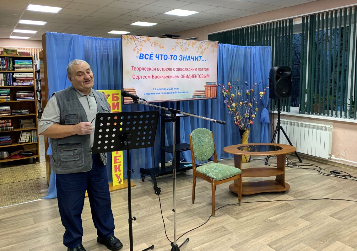 27 ноября в читальном зале Заволжской библиотеки в рамках клуба «СтихиЯ» состоялась творческая встреча с нашим земляком Сергеем Васильевичем Обидиентовым, которую провели Т.В. Зайцева и Н.В. Петриченко.