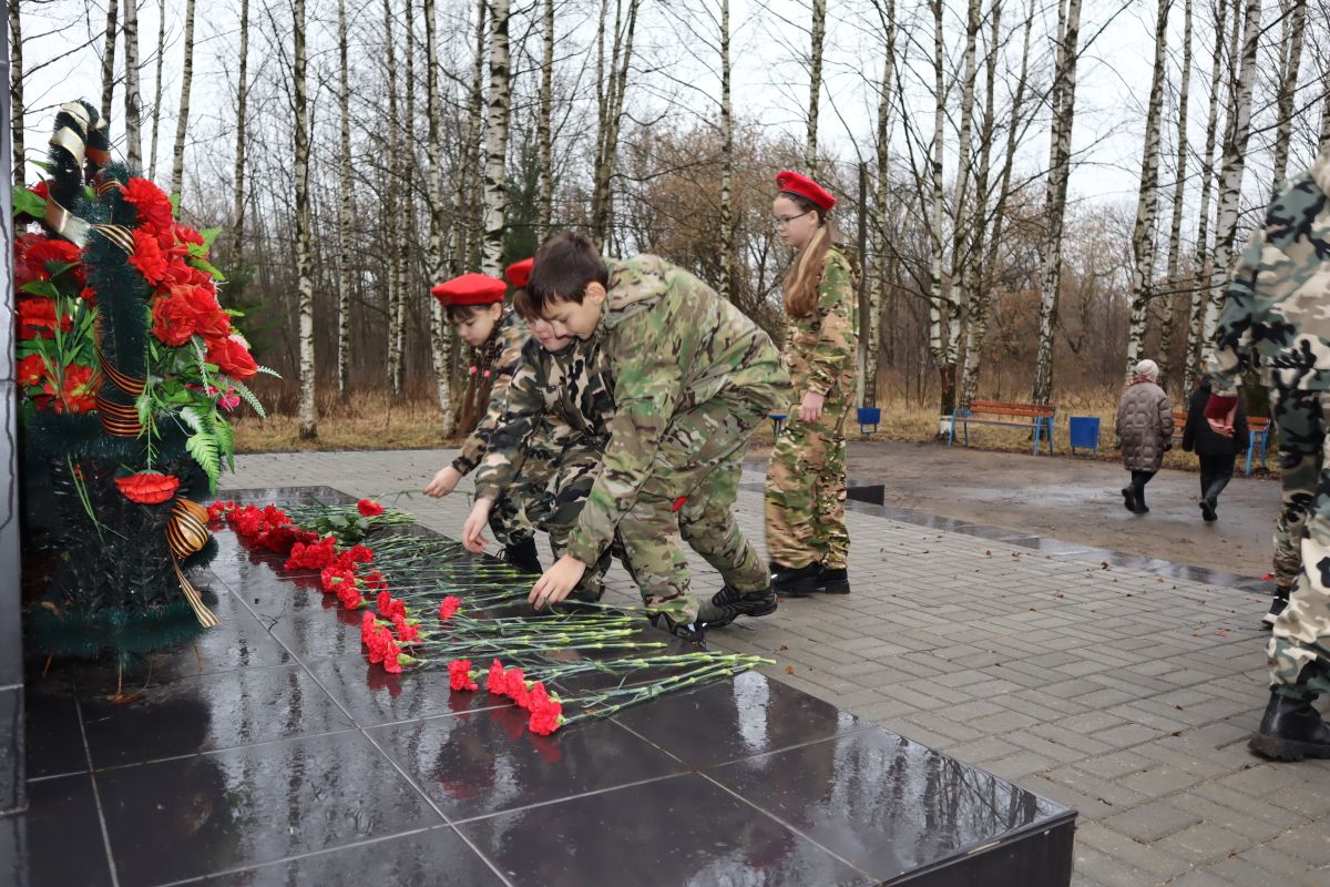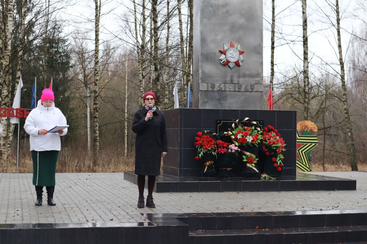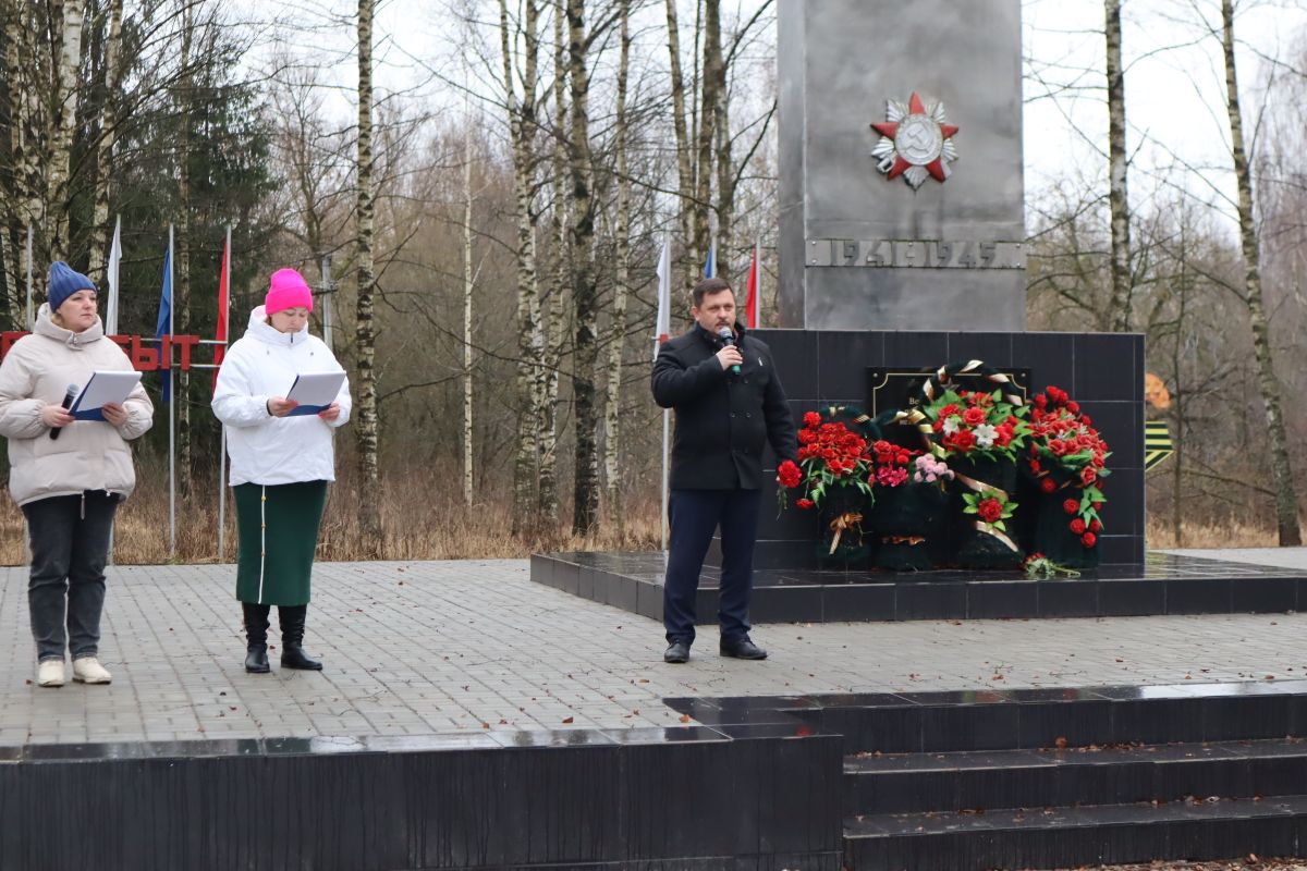 Участники акции почтили минутой молчания память бойцов и возложили цветы в память о всех тех, кто погиб, защищая Отечество.