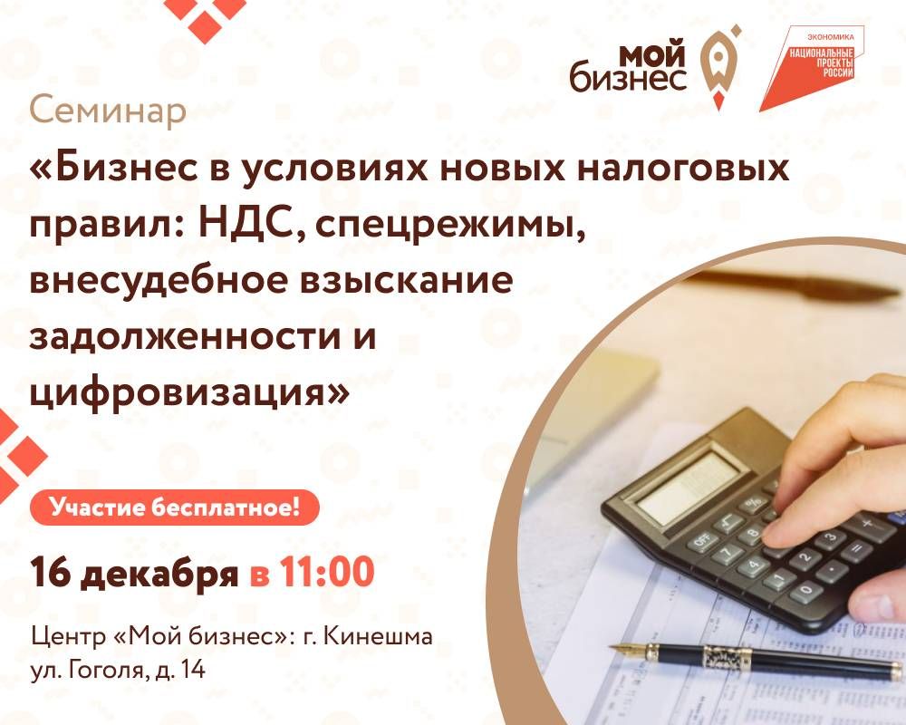Центр «Мой бизнес» приглашает предпринимателей на бесплатный семинар: «Бизнес в условиях новых налоговых правил: НДС, спецрежимы, внесудебное взыскание задолженности и цифровизация».