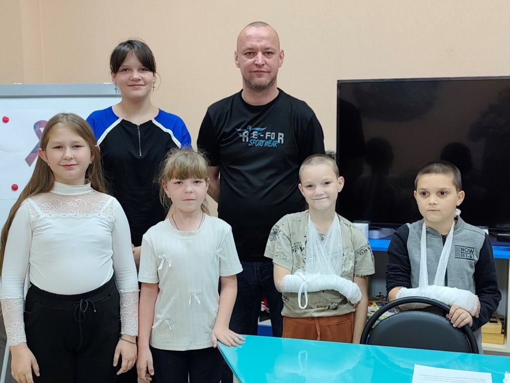 Ребята узнали, как оказать первую медицинскую помощи при бытовых травмах: порезах, ушибах и ожогах. Андрей Александрович продемонстрировал, как наложить повязку, на повреждённый участок тела и как правильно зафиксировать предположительный перелом конечности при помощи подручных средств до приезда скорой помощи или самостоятельного обращения к врачу. Эти навыки могут оказаться крайне полезными в экстренной ситуации.