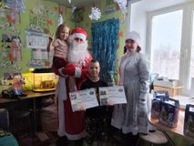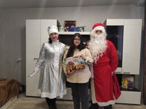 29 декабря поздравили 8 ребят, посещающих отделение социального сопровождения семей с детьми. Дети рассказали стихи и вспомнили, какими интересными событиями был наполнен 2025 год. Каждый получил от Деда Мороза и Снегурочки сладкий подарок.