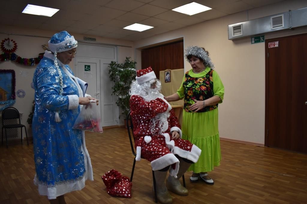 Пришедший Дед Мороз и Снегурочка поздравили всех гостей с наступающим новым годом и подарили каждому новогодние сувениры. Участники в свою очередь читали стихи, пели песни и водили хороводы. Праздничную программу продолжили выступления вокальной группы «Зимние вишни» и танцевального коллектива «Заволжаночка».