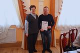 Далее, Цветкова Елена Борисовна, главный редактор газеты «Авангард», вручила Румянцеву Павлу Павловичу диплом в номинации «Чтоб жила глубинка» за помощь благоустройстве общественной территории «Детская игровая площадка – проект «Солнышко» (Волжское сельское поселение, д. Фоминское, д. 25).