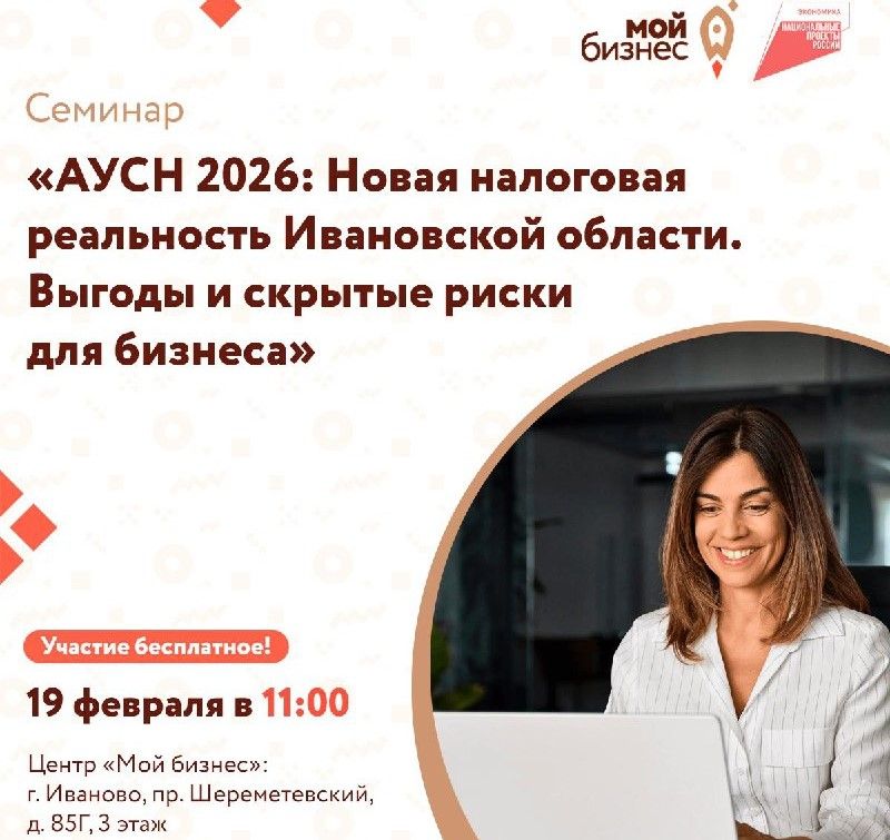 Центр «Мой бизнес» приглашает предпринимателей региона на семинар: «АУСН 2026: Новая налоговая реальность Ивановской области. Выгоды и скрытые риски для бизнеса»