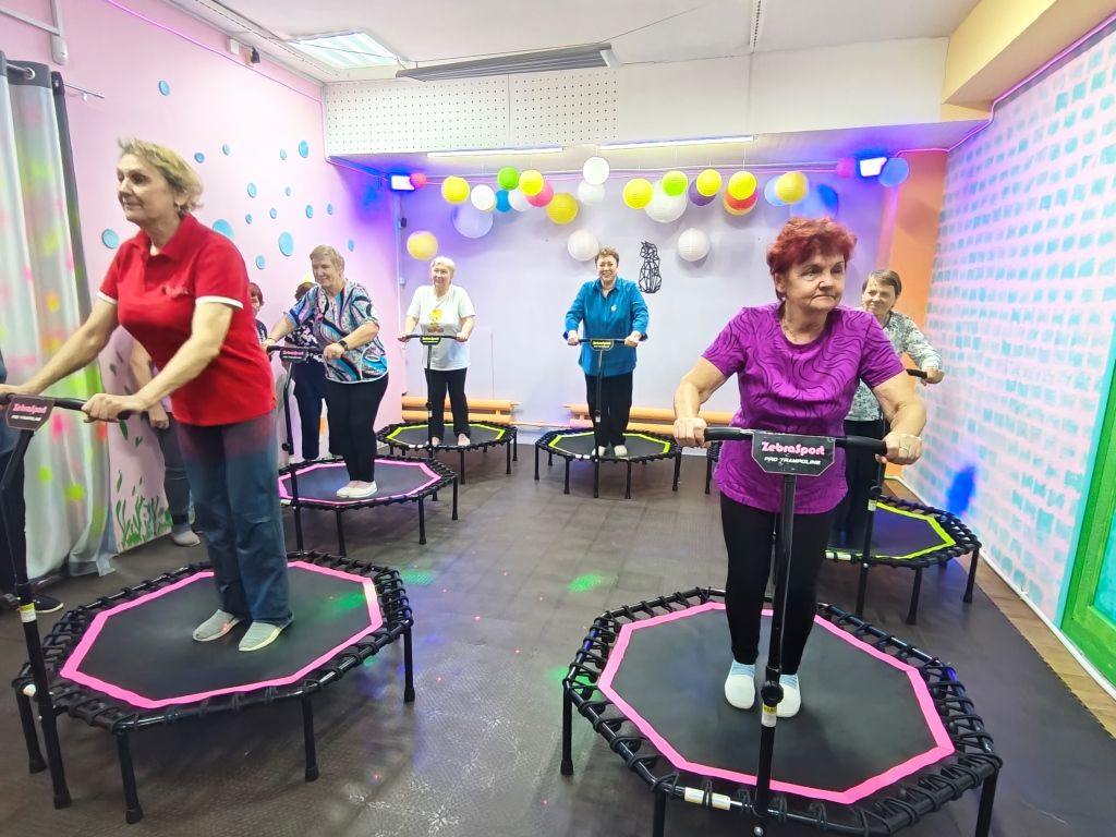 В конце занятия участницы под чутким руководством инструктора попробовали свои силы на джампинг-платформах. Джампинг также подходит для старшего поколения, так как не подразумевает высокие интенсивные кардио-прыжки. Выполняются лёгкие покачивания, упражнения на растягивание и укрепление суставов.