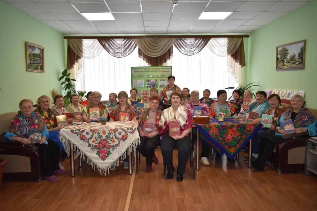 Специалист по социальной работе Заволжского центра социального обслуживания Марина Валерьевна Любимова в рамках акции преподнесла книги рецептов приготовления блюд «От А до Я» всем участникам мероприятия от ОБУСО «Заволжский ЦСО».