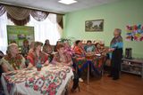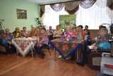 Далее для участников группы сотрудники МКУК «Заволжской городской библиотеки» Анна Сергеевна Миловидова и Людмила Владимировна Девочкина провели мероприятие «Платочная кадриль». Все зрители заранее накинули на плечи платки, что создало атмосферу праздника. Ведущие мероприятия рассказали историю возникновения платков, перечислили разные виды платков и способы их завязывания. Свой рассказ они сопровождали показом презентации. Кроме этого зрители вспомнили песни о платках, пели частушки, передавая платок, читали стихи. В завершении мероприятия все вместе исполнили песню «Стою на полустаночке» под караоке.