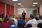 16 февраля участники клуба собрались в актовом зале центра. Основной темой заседания стала «Красивая походка и осанка в любом возрасте». Соавторы проекта Тамара Павловна Курочкина и Лидия Александровна Орт рассказали о важности соблюдения правил красивой осанки во время проведения мероприятий, показали, как с помощью упражнений можно формировать правильную походку и осанку.
