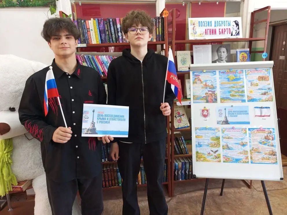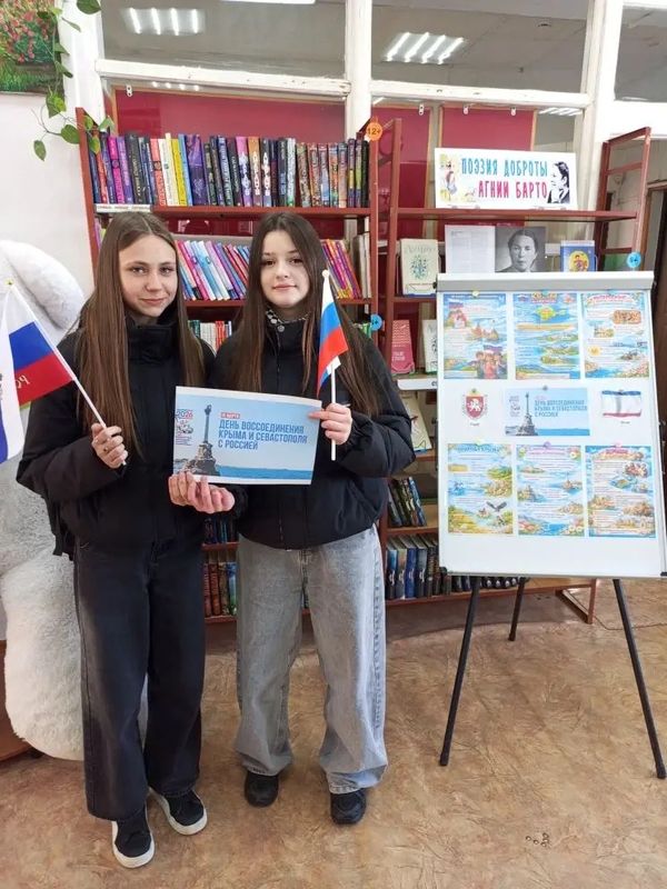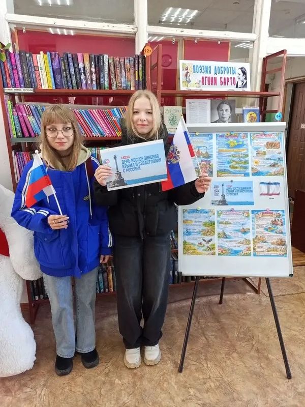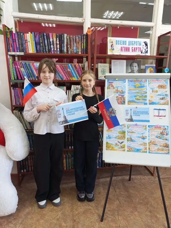 В Заволжской библиотеке прошла акция к Дню воссоединения Крыма и Севастополя с Россией с участием юных читателей.