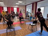 Продолжила занятие Елена Апурина, заведующий отделением срочного социального обслуживания. Она предложила комплекс упражнений на стульях. Потом все вместе выполнили комплекс упражнений на растяжку на гимнастических ковриках и «порелаксировали» под приятную музыку.